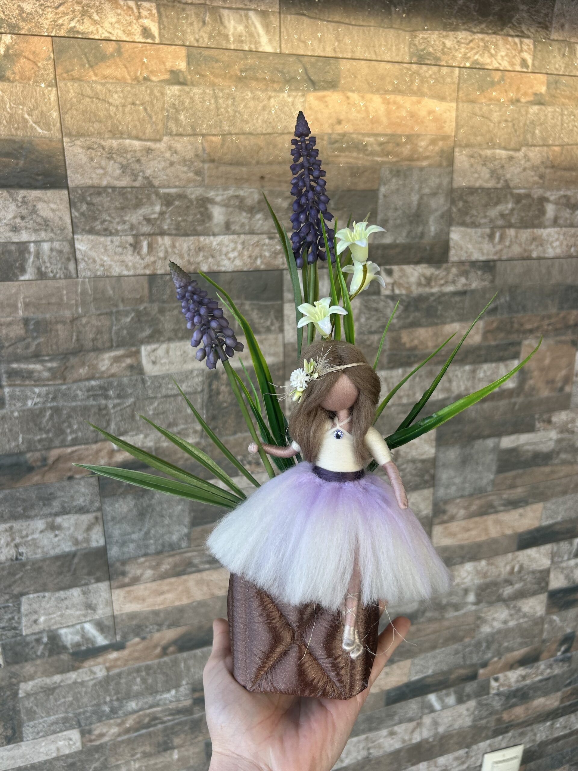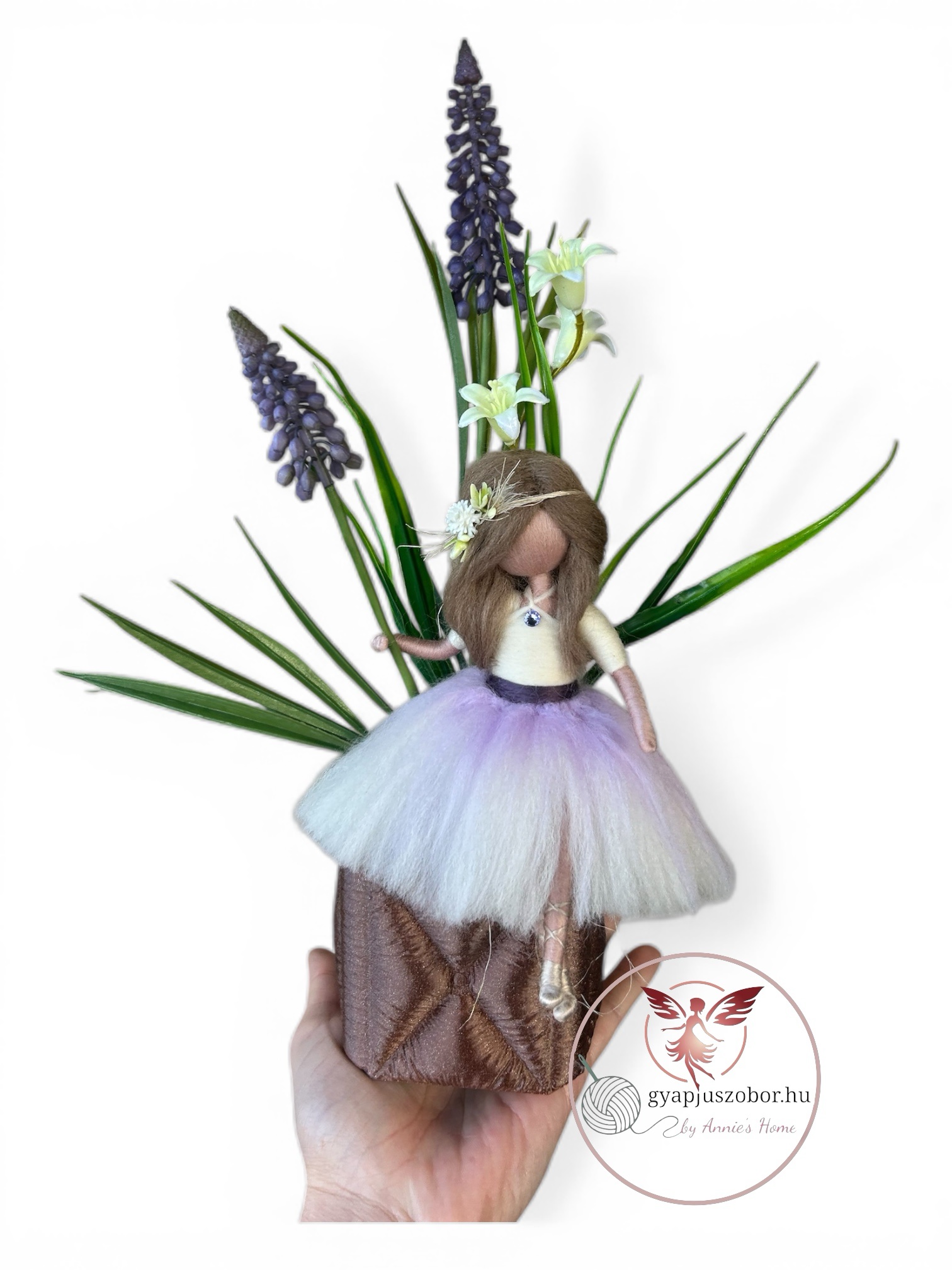 Kb 32 cm magas, gyöngyike virágos nemezelt figurás dekoráció.